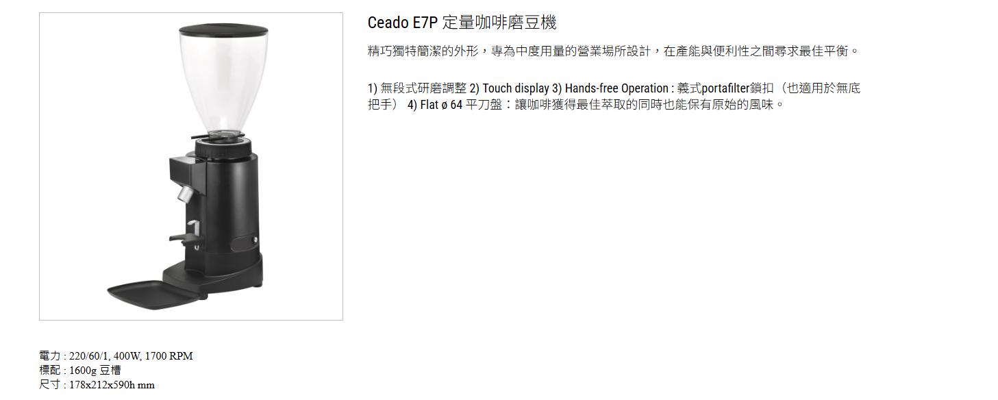 【優惠價】耐用實惠訂量磨豆機 ceado E7P 訂量磨豆機 (黑白兩色)